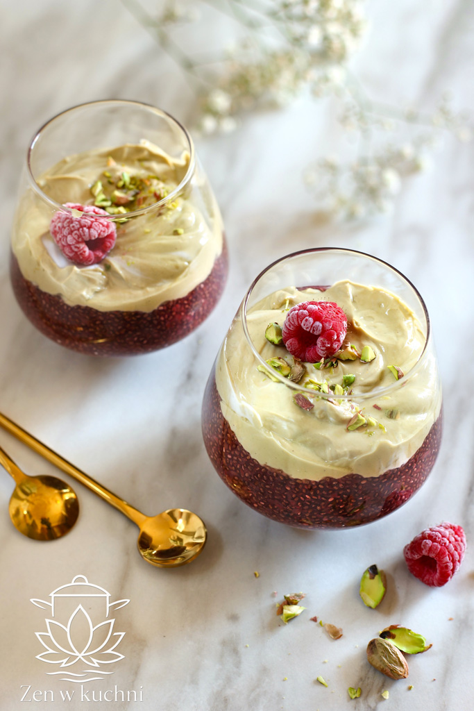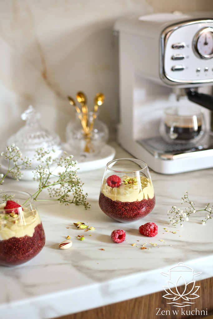Do 2 szklaneczek nałóż porcje malinowego chia, następnie wyłóż krem na wierzch.