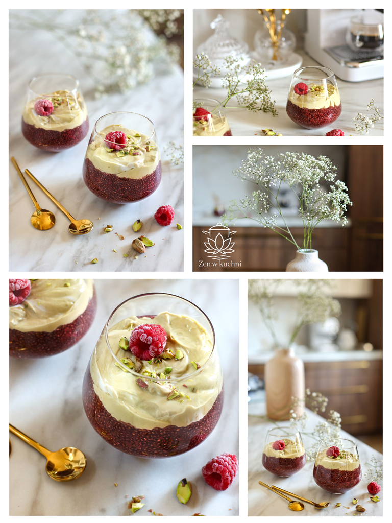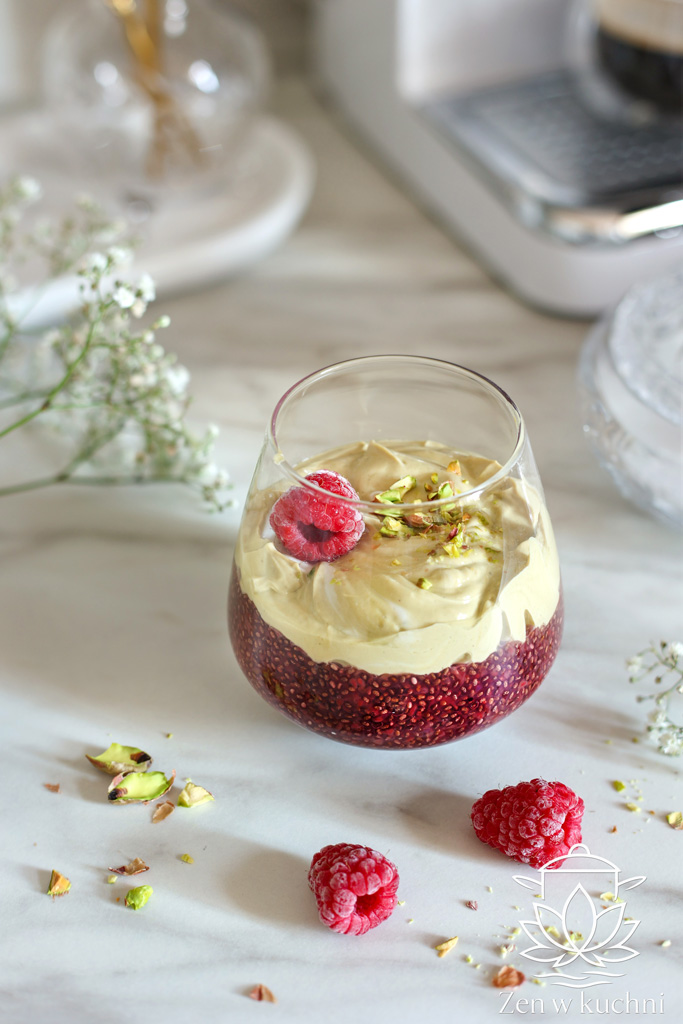 Chia pudding z malinami i kremem pistacjowym to jeden z tych deserów, które łączą w sobie prostotę przygotowania, świetne wartości odżywcze i efektowny wygląd. W mojej wersji stawiam na połączenie delikatnego puddingu z nasion chia, pysznych malin oraz kremowego pistacjowego musu na bazie skyru. To idealna propozycja na zdrowe śniadanie lub lekki deser. A także na przekąskę „na wynos”, która nie tylko syci, ale też pięknie prezentuje się w szklance. Jeśli szukasz pomysłu na szybki, wysokobiałkowy i jednocześnie wyjątkowo pyszny pudding chia, ten przepis będzie dla Ciebie.