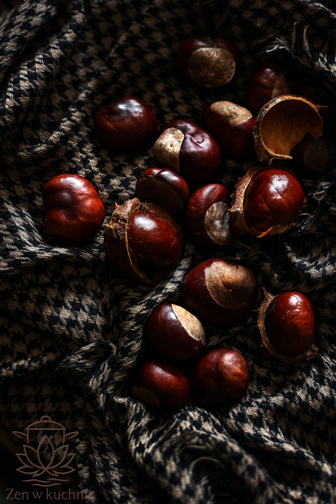 Orzechy, brukselka, jakieś resztki kasztanów (chyba się zagapiłam), liście dębu i … czerwona ozdobna kukurydza, którą dostałam w prezencie. I oczywiście Melon (nie ten do jedzenia tylko kot), który cały czas mi przeszkadzał i mnie rozpraszał, ale jak przyszło co do czego to pozować nie raczył.