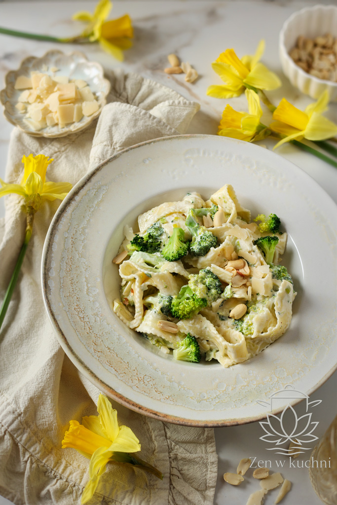 To jeden z przepisów, który robię niemal z „zamkniętymi oczami” 😉 Makaron, trochę warzyw i mascarpone. W zależności od tego co mam w lodówce robię go na przykład z papryką i cukinią lub w sezonie z dynią. Danie jest proste w przygotowaniu nawet dla początkujących. Należy tylko pilnować, żeby brokuł pozostał lekko al dente. Rozgotowany traci kolor i swój niepowtarzalny urok 😉